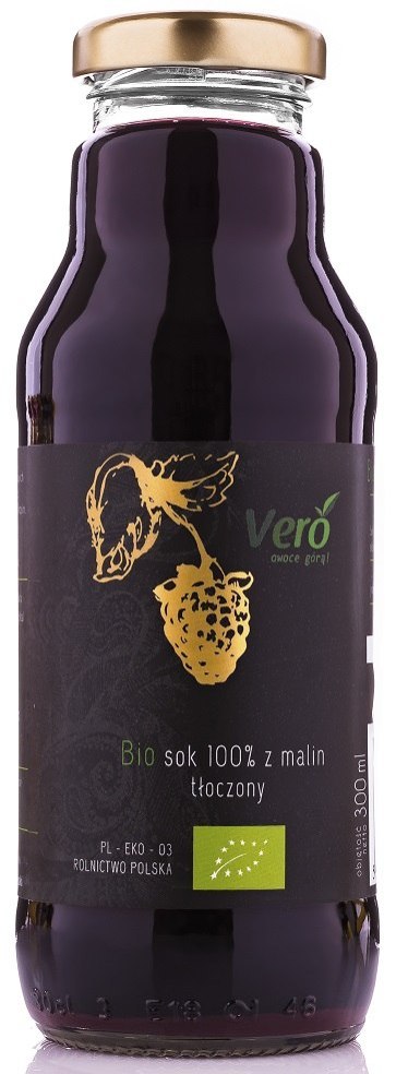 sok tłoczony na zimno ze świeżych malin* (100 %). (*certyfikowany składnik ekologiczny)